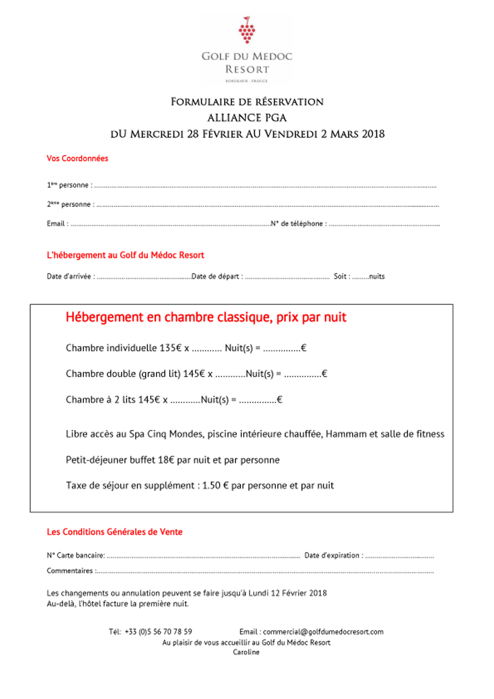 Si vous voulez être hébergés au golf , cliquez sur le formullaire de réservation suivant.